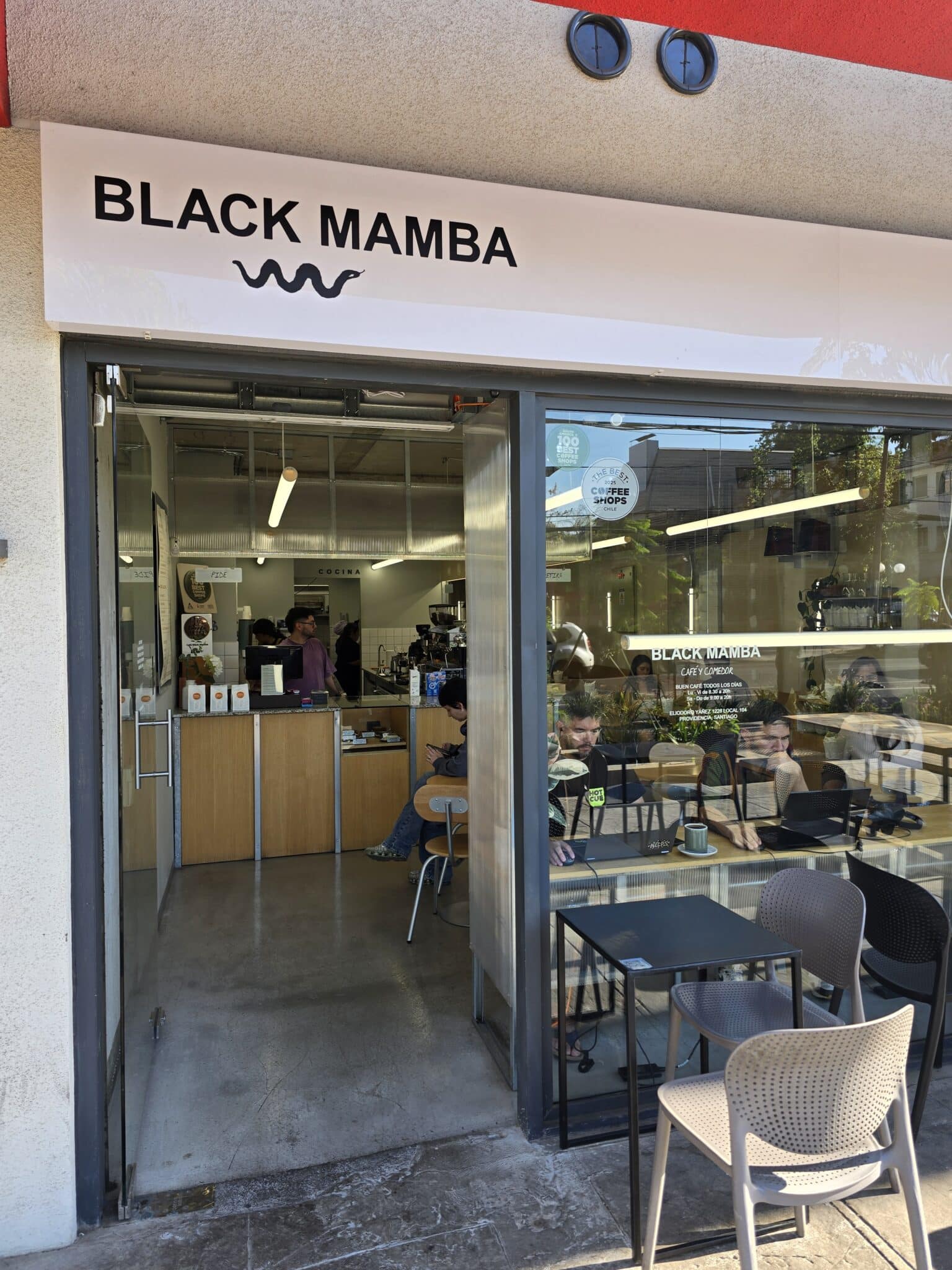 Vicente Farfán lleva años vendiendo café y maquinaria para Café Terra, así que cuando abrió su propio local en febrero sabía exactamente lo que quería. Eligió una zona residencial de Providencia, lejos del circuito saturado de siempre, y armó un espacio que se siente como refugio: tranquilo, privado, con elementos originales de la obra antigua que le dan carácter. El café viene directo de fincas a través de Café Terra. El WiFi acaba de llegar y anda perfecto. Para comer, destacan sus croissants y hogaza de La Mom, y las tostadas y el flan de caramelo de Madeleine, grandes nombres de la bollería y panadería.