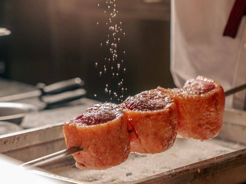 El gaucho es el custodio de todo el proceso. Recibe la carne, la procesa, la ensarta en la espada, la cocina y la sirve personalmente en la mesa. En Fogo de Chão, la cadena brasileña que convirtió esa tradición en un formato replicable en más de 119 locales en el mundo, los gauchos siguen siendo el centro de la operación. Cinco maestros gaúchos brasileños llegaron a Chile para transmitir la técnica al equipo local y son ellos quienes recorren el salón con las espadas cargadas, ofreciendo corte tras corte hasta que los comensales queden satisfechos.