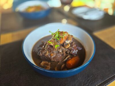 El Atún Crocante ($11.900) juega con lo crujiente del apanado y lo jugoso del atún, elevado por la dulzura natural de una peperonata y la acidez que le aporta una reducción de balsámico. Un plato para irse a la segura, pero con un ingenioso twist del cocinero. Más osado resulta el Chicharrón de Mollejas ($12.900), doradas por fuera y melosas en su interior, servidas sobre una papa crocante tipo rösti. Una preparación creativa que nos muestra la identidad del chef y que permite ver un lado más personal de su cocina.